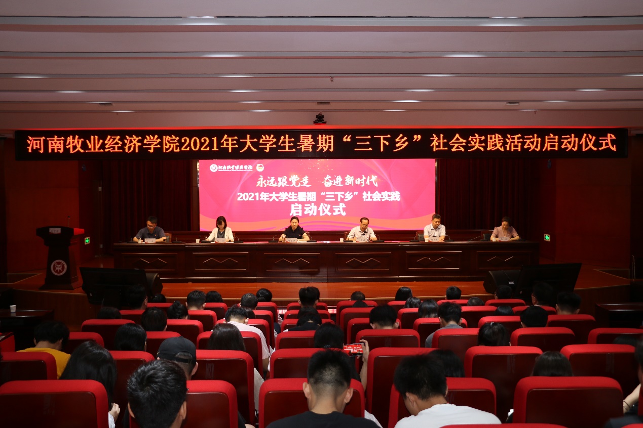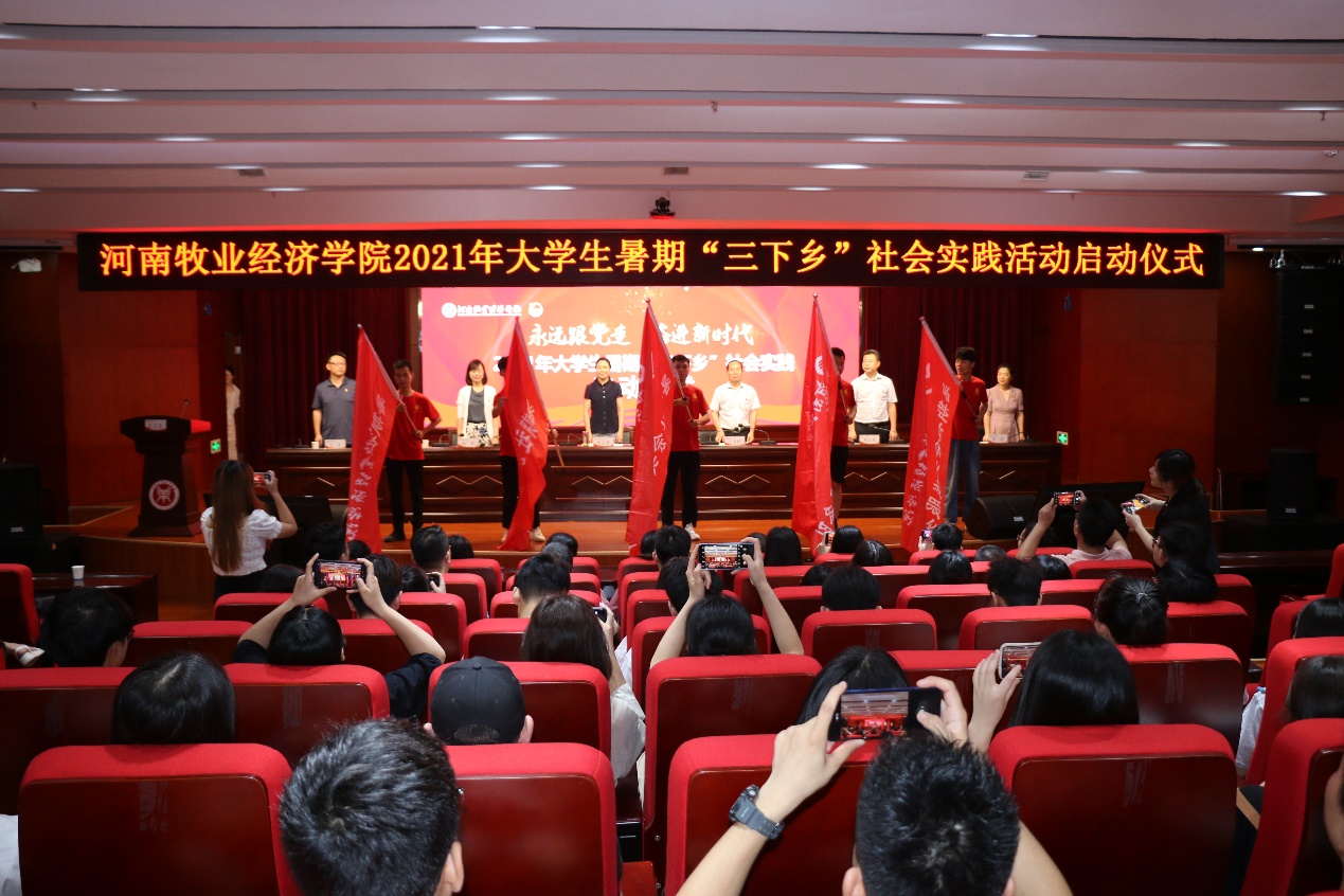 7月2日,完美官网2021年暑期“三下乡”社会实践活动启动仪式在龙子湖校区图书馆一楼学术报告厅举行。副校长杨志清,党委委员、党委宣传部部长王凌彬,校团委书记杨莉,学工部副部长、弘远书院党委副书记兼副院长(主持工作)胡卫东,各二级学院团委书记、辅导员,各实践队指导教师和学生代表150余人参加仪式。仪式由杨莉主持。