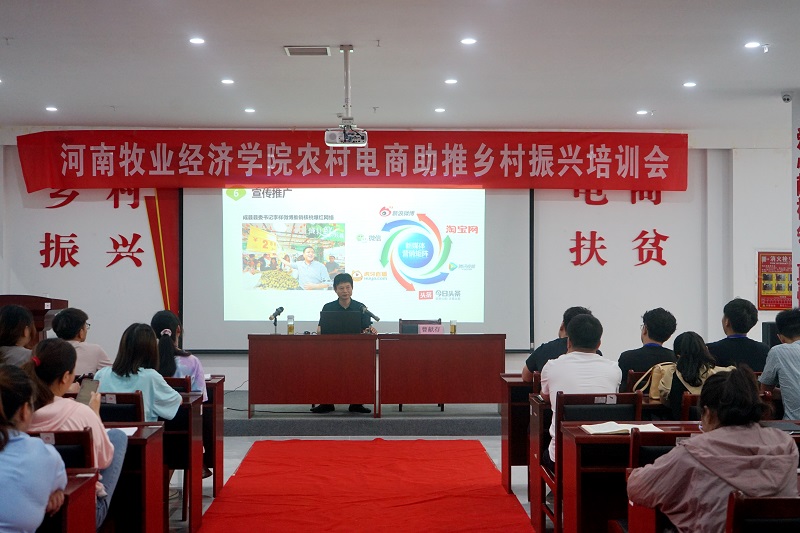 与此同时,在新蔡县新时代文明实践中心,农村电商助推乡村振兴现场培训会正在召开。物流与电商学院院长曹献存以“农村电商助推乡村振兴”为题,从政府做什么、社会怎么做、企业如何做、未来往哪走等方面,详细分析了农村电商发展要点,重点讲解了打通农村电商全渠道、打造农村电商产业链、开发特色产品、“三产”融合等内容,带领与会者深入了解电子商务的重要性,准确把握农村电子商务发展态势。