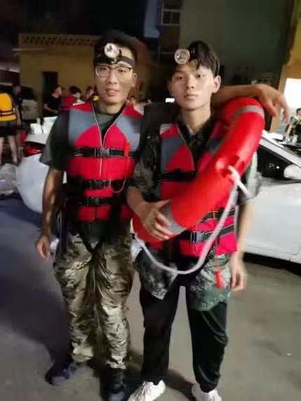 动物医药学院学生张行健积极加入蓝天救援队,用冲锋舟运送物资、接送受困群众。