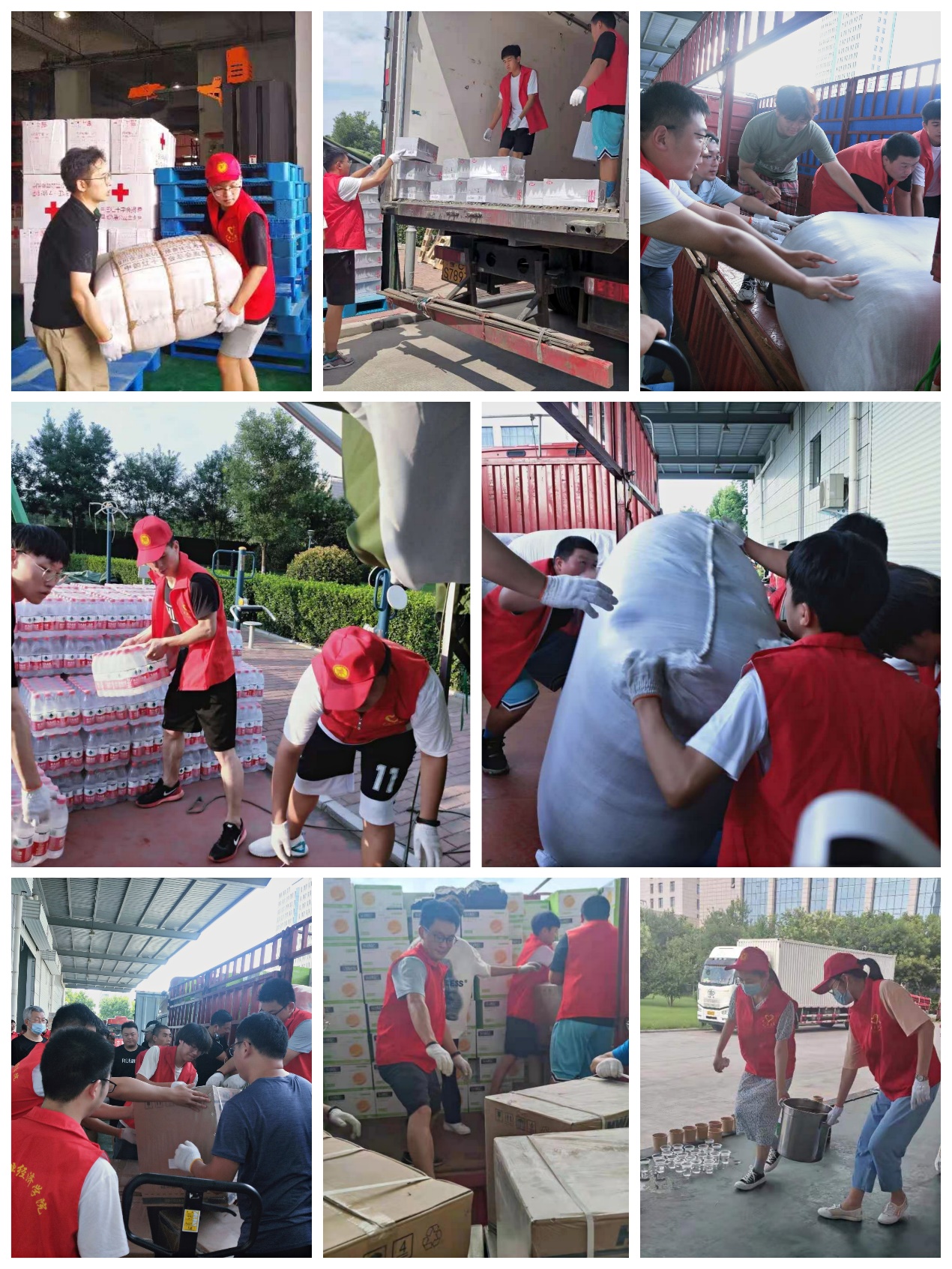 7月下旬,河南汛情牵动着全国人民的心,暴雨无情,人间有爱,来自各地捐助的防汛救灾物资陆续到达河南省红十字会,并由此分发至我省新乡、鹤壁、周口等地。爱心救灾物资的装卸需要大量的人力,河南省红十字会紧急招募志愿者,希望社会各界伸出援助之手。完美官网师生闻讯自发报名,踊跃参与,7月26日至29日,校团委与龙子湖校区各学院自愿参与的共青团员,后勤处、信息化办公室、体育部、畜产品质量安全技术研究院、图书馆等部门自发前往的老师共计70余名师生志愿者助力河南省红十字会装卸爱心救灾物资。