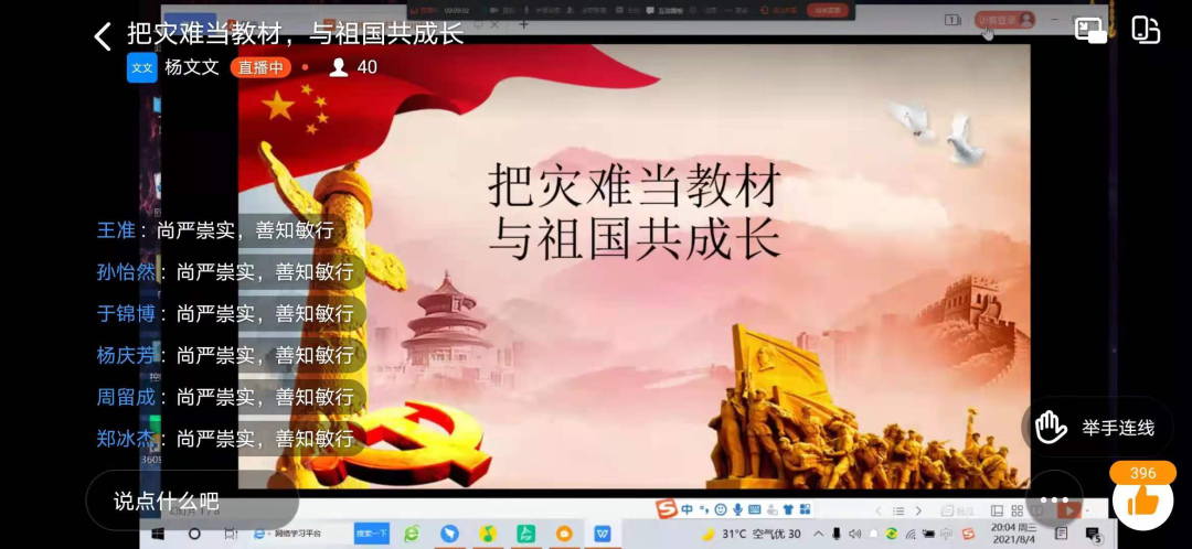 8月2-4日,校团委号召各二级学院团委、各班团支部开展“把灾难当教材,与祖国共成长”线上主题团课。各二级学院团委、各班级团支部积极响应,精心组织,将团课小课堂融入社会大课堂,把灾难当教材,把困难当磨砺,在具体实践中厚植爱国主义情怀。