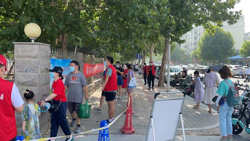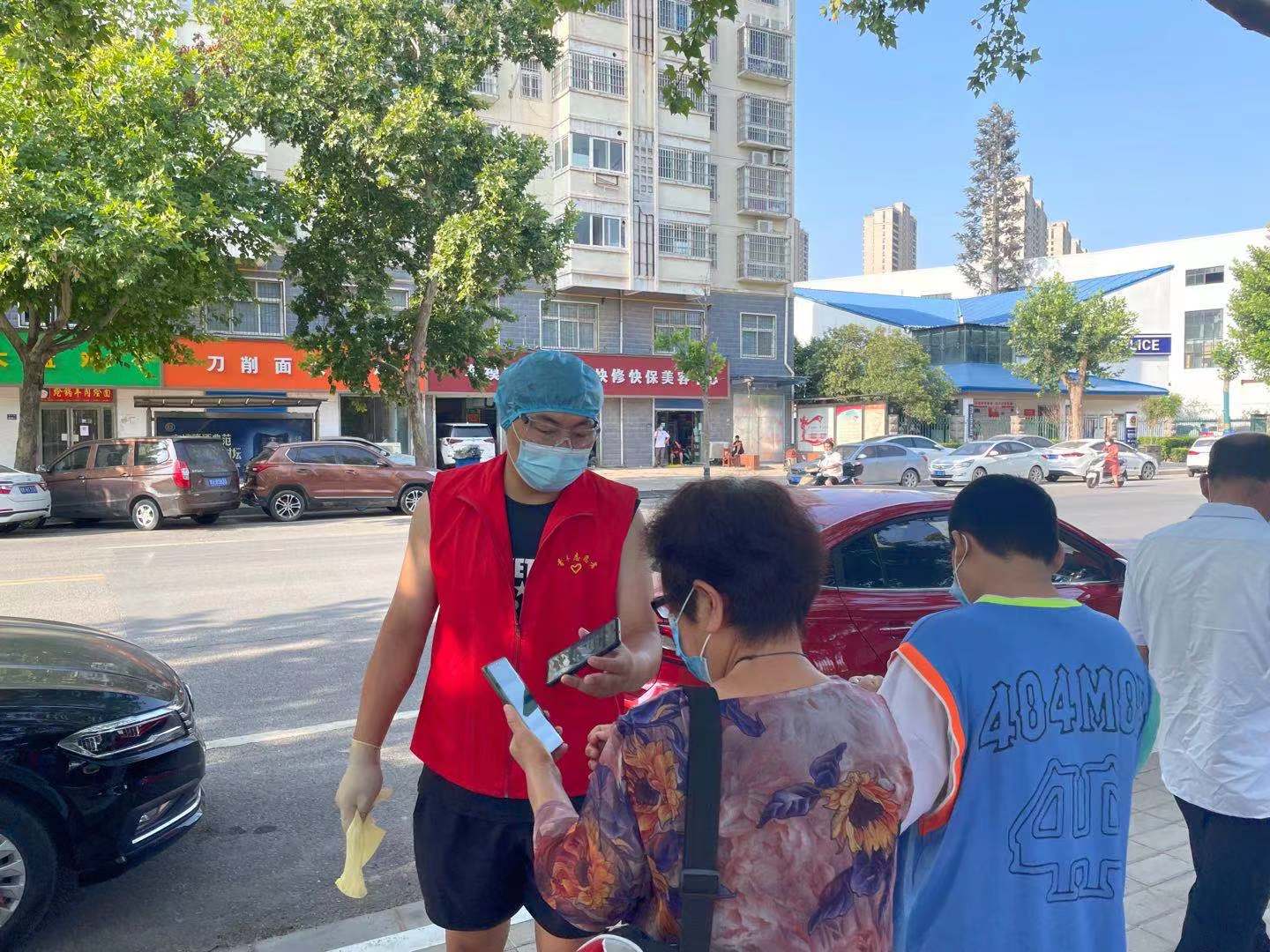 在核酸检测点,党员志愿者身穿红马甲分工合作,协助参与包括信息登记、秩序维护、后勤保障等多种形式的志愿工作。他们当中,有五十多岁的老党员,也有父女齐上阵的老师,还有闻讯赶来的毕业多年的校友,还有很多教职工踊跃参与志愿服务工作,他们与学校后勤处教职工一同为全员核酸检测有序开展提供了有力保障。8月3日,副校长姚毅专程到英才校区核酸检测点检查指导工作并慰问党员志愿服务队的同志,勉励志愿者以高度的责任心和使命感,为疫情防控工作做出积极贡献。参与志愿服务的同志纷纷表示,要在疫情防控阻击战中践行初心使命,在防疫志愿服务中展现作为担当!