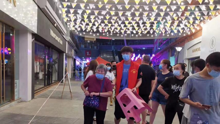 冉子凡同学回忆到:在整个核酸检测的过程中,最令人暖心的是老幼病残孕绿色通道服务的开通,此便捷通道极大方便了前来进行核酸检测的老幼等特殊群体,保证了核酸检测工作的高效高质推进。在此过程中,前来帮忙的志愿者数不胜数,甚至有的过路人看到行动不便的老人,也会放下手中物品毫不犹豫地进行帮助,即使暑气蒸人,汗水浸湿衣裳,志愿者们也坚持用自己的一份力量夯实防疫防线。冉子凡同学表示:作为一名志愿者,在助人的同时,也磨砺了自我,很庆幸自己能够有这样的一个机会,为疫情阻击战贡献一份力量。