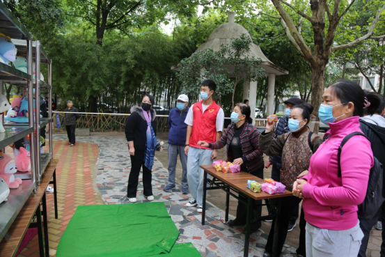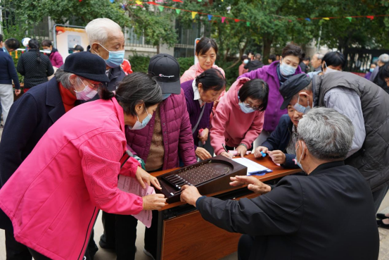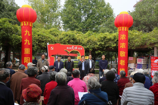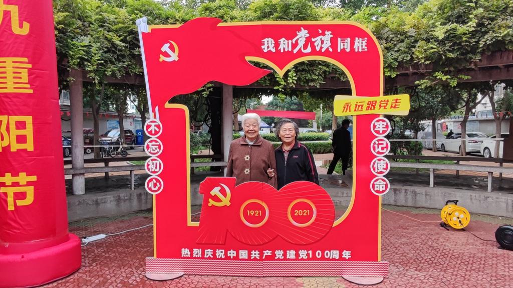 活动现场彩旗飘扬,“九九重阳节、浓浓敬老情”两个鲜红的灯笼气柱矗立在场地正中,“我和党旗同框”主题背景墙吸引了大家纷纷驻足留影,工作人员现场为大家冲印照片。