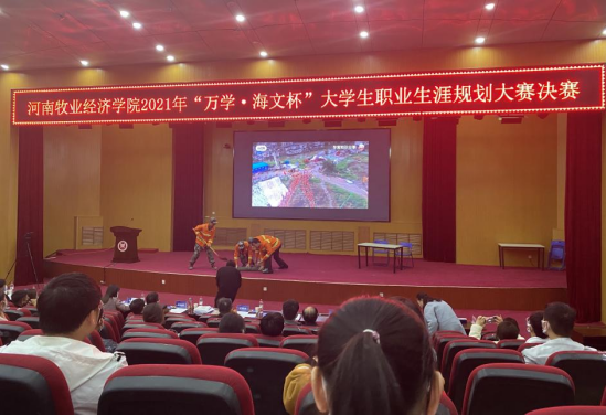 大赛有学工部部长郝景昊、万学海文总部运营经理杨志路、资深职业生涯规划师杜鹏娟教授、大学生心理健康教育中心主任张颖、大学生就业创业指导服务中心(创新创业学院)副主任张琳、职业发展与就业指导教研室丁锋博士担任评委。来自各学院17名选手参加了决赛。
