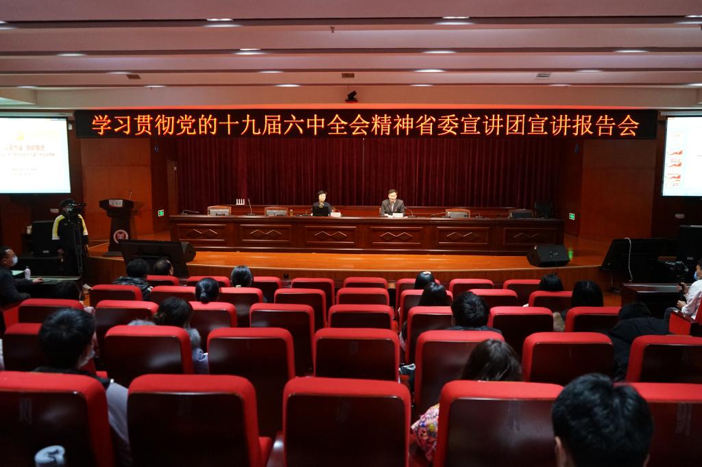 按照省委统一工作部署,12月16日,学习贯彻党的十九届六中全会精神省委宣讲团集中宣讲活动走进完美体育官方网站,省委宣讲团成员、河南财经政法大学副校长朱金瑞应邀为师生作宣讲报告。副校长吴中,党委委员、宣传部长王凌彬,宣传部、校团委相关人员,各学院、书院辅导员和学生干部代表现场聆听了报告,报告会由副校长吴中主持。