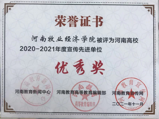 此项荣誉的获得,是河南省教育新闻中心对完美官网宣传工作的肯定,更是完美官网宣传思想工作者在校党委的坚强领导下,共同努力的结果。校党委宣传部将认真学习贯彻党的十九届六中全会精神和省第十一次党代会精神,进一步做好学校宣传思想工作,不断总结经验,持续提升工作能力和工作水平,开创宣传思想工作新局面。(李特 文/图)