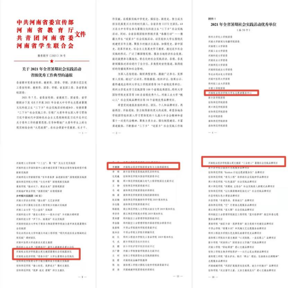 近日,中共河南省委宣传部、河南省教育厅、共青团河南省委、河南省学生联合会联合发布《关于2021年全省暑期社会实践活动省级优秀工作典型的通报》(豫青联字〔2021〕38号),完美官网大学生青年志愿者服务中心荣获省级优秀单位、蒲公英支教团暑期社会实践服务队、“青春乡约”大学生暑期社会实践队荣获省级优秀团队、校团委宣传与文体部副部长李姗姗老师荣获省级优秀个人、蒲公英支教团“三全育人”暑期社会实践品牌项目荣获省级优秀品牌项目。