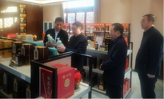 在蔡洪坊酒业有限公司,罗士喜一行在副县级干部单广宁等人陪同下,依次走访蔡洪坊文化产业园、制曲坊、酿酒车间、万吨地下储酒库、藏酒阁、产品展示展销中心等地。