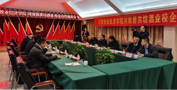 校企双方召开座谈会。罗士喜表示,学校具有悠久的校企合作办学史,产教融合服务行业发展是学校的优良办学传统,为响应省委、省政府“豫酒振兴”号召,学校成立了省内首家酒业学院,为豫酒发展提供人才和技术支撑;学校和蔡洪坊酒业具有良好的合作基础,双方应着眼未来和产业发展,依托科技推进酿酒工艺现代化、标准化进程,不断加强在科技攻关、人才培养、成果转化等方面的合作,共同推动豫酒产业发展,为中部地区高质量发展做出应有的贡献。与会双方就酿酒功能微生物调控、关键微生物培养、加速基酒老熟研究等方面的合作进行了深入交流。
