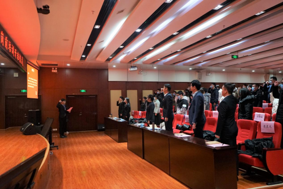 开班仪式上,与会领导为新进教师代表佩戴校徽;食品与生物工程学院常惟丹博士代表新进教师作发言;能源与智能工程学院教师王皓宇带领全体新进教师面向校旗,进行庄严的入职宣誓。