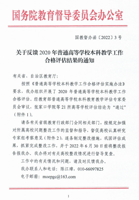 近日,国务院教育督导委员会办公室发布了《关于反馈2020年普通高等学校本科教学工作合格评估结果的通知》(国教督办函〔2022〕3号),正式公布了2020年普通高等学校本科教学工作合格评估结论,完美官网本科教学合格评估的结论为“通过”。这标志着学校本科教学工作得到了教育部的认可,学校顺利完成了“三步走”发展目标的第一步,迈入了前进的新征程。