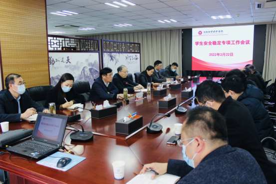 杨宝进传达了全省校园安全工作专题视频会议精神:要始终保持清醒的忧患意识,要牢牢把握防范重点,要强化极端灾害天气应对处置,要扎实推进平安校园创建工作。他要求,学校相关部门要牢牢把握学生安全稳定工作重点,科学谋划,精心部署,全力以赴做好疫情防控、校园交通安全、宿舍消防安全、人身财产安全、心理健康等学生安全稳定各项工作。