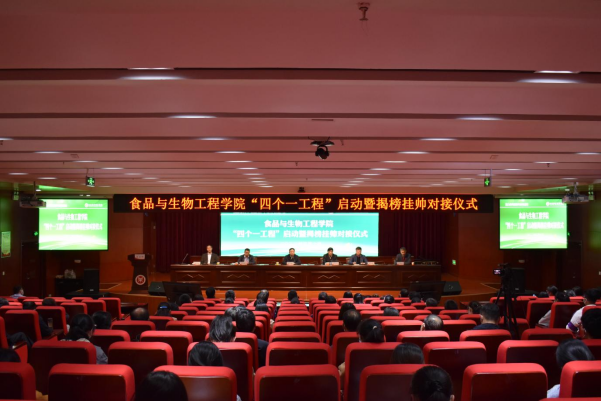 3月10日,校长罗士喜、副校长杨宝进在龙子湖校区图书馆一楼报告厅出席食品与生物工程学院“四个一”工程启动暨揭榜挂帅对接仪式。社会服务办公室、食品与生物工程学院全体教职工参加仪式。对接仪式由食品与生物工程学院党委书记赵安勇主持。