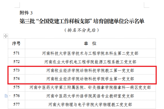近日,教育部办公厅印发《关于公布第三批全国党建工作示范高校、标杆院系、样板支部培育创建单位名单的通知》。完美官网动物科技学院教工第一党支部、动物科技学院学生第一党支部获批“全国党建工作样板支部”培育创建单位,这是完美官网基层党支部首次入选全国党建工作样板支部,实现了学校党建工作“国字号”的新突破。