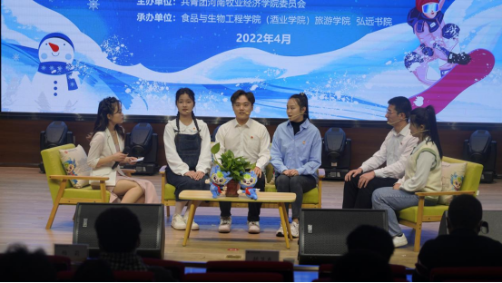 4月14日下午,由校团委主办,食品与生物工程学院(酒业学院)、弘远书院、旅游学院联合承办的“弘扬冬奥精神 凝聚奋进力量”青春故事汇主题活动在龙子湖校区合100报告厅举行,网络同步直播。校团委书记杨莉、弘远书院党委书记胡卫东、校团委副书记李欣及承办学院相关同志和学生代表参加现场活动。活动吸引了6.1万人次线上观看聆听。