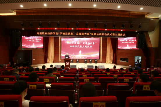 校党委书记穆瑞杰在仪式上致辞时回顾了学校发展的光辉历程,展望了学校振兴的美好未来。他指出,举办“学校是我家、发展靠大家”系列活动启动仪式,是学校在持续推进“牧工商一体化”多学科交叉融合发展,奋力实现第二步发展目标的启程点举行的一次非常有意义的活动。希望广大师生通过表达“我们的情怀”,回顾“我们的历史”,继承“我们的文化”,坚定“我们的行动”,学习“我们的榜样”,唱响“我们的旋律”,凝聚“同向而行、同频共振”的情感合力,促进学校高质量发展,以优异成绩迎接党的二十大胜利召开!穆瑞杰强调,面对高等教育的新要求,我们要做个有心人,常知变、勤识变、善谋变;转观念、改作风、提能力,争做为学、为事、为人的大先生。