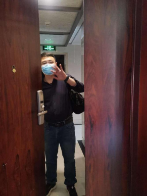 韩飞是楼宇负责人,肩负全楼学生安全稳定;六层楼,一百多间寝室,五百多名学生,一次物资配送任务就上万步了,一日三餐、中药、水果等等,早已经不知道走了多少路,跑了多少趟了。