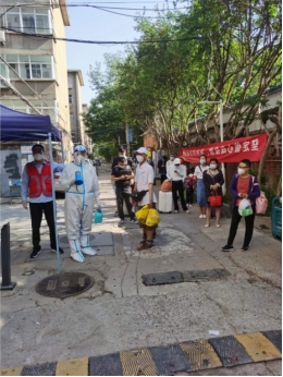 为了不耽误正常教学,张思胜老师在“教师”和“大白”“红马甲”之间不停切换。5月4日,他连上了6节课后,立刻换上红马甲走上志愿岗位。期间,张思胜老师负责协助转运病人约120余人,协助上门采集核酸检测300多人次。