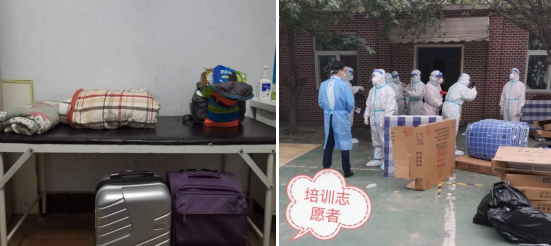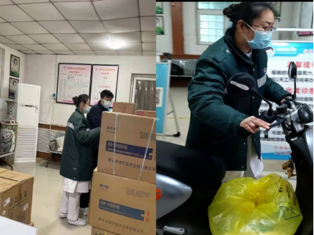 英才校区划入封控区后,运送捐赠物品的车无法进入校内,只能卸货在校门口,年逾五旬的药师刘爱军娴熟的骑着运货三轮车,风里雨里一趟趟运送;体重仅九十余斤的药品库管员程广晖拉着小拖车,默默一趟趟将物资转运至防疫物资分发处;小个子的护士们体弱志坚,腰酸了,背痛了,相互揉一揉,按一按,又咬牙开始了,一起搬运了十几吨抗疫物资。