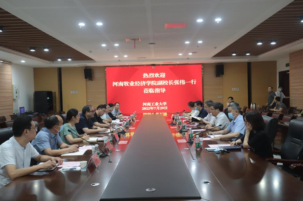 张伟一行受到河南工业大学副校长陈复生及相关部门负责同志热情接待,双方在河南工业大学学术交流中心会议室展开交流座谈。