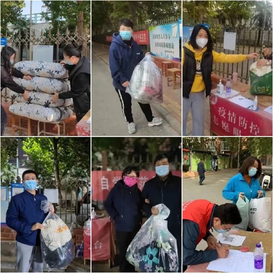 学校党员先锋岗闻讯而动,发出爱心捐赠活动倡议,教职工及家属积极响应,纷纷伸出援助之手,送去衣物被褥。11月4日晚上,短短两个半小时,英才校区家属院教职工共捐赠毛毯、被褥等83条,羽绒服、外套等230余件。有的老师抱出家里的厚实的新棉被,有的老师买赠崭新的冲锋衣……11月6日上午,龙子湖校区家属院小广场上,爱心捐赠温暖接力,你送来一条被子,我送来一件棉衣……两个小时内,83位教职工及家属捐赠的羽绒服、被褥等共计431件。你守护校园,我们温暖你,只要人人都奉献一点爱,世界将变成美好的人间,一件件御寒衣物,犹如一颗颗温暖的爱心,汇聚成爱的堡垒,加固了疫情防控的后勤保障线,传递着众志成城共克时艰的信念。