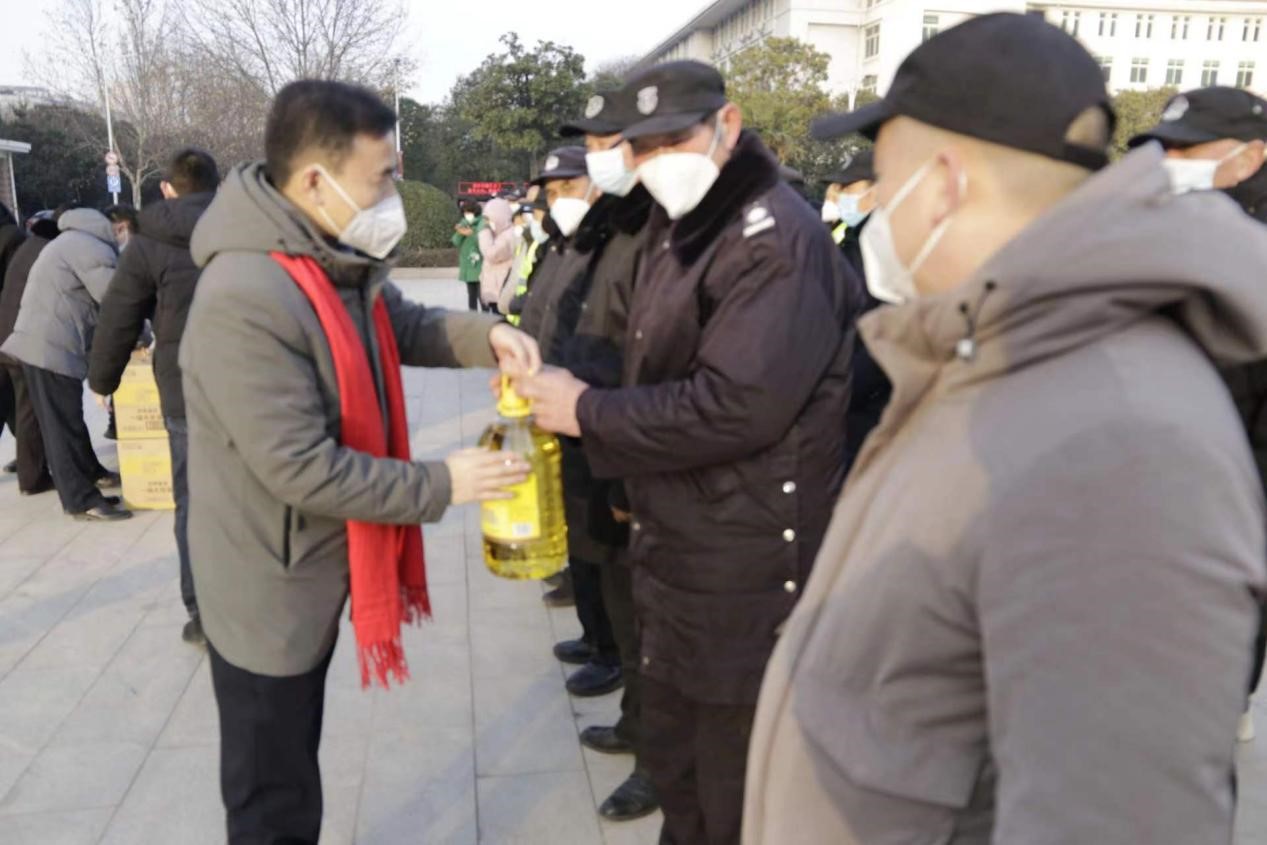 校领导和有关部门负责同志代表学校共同为假期留校值班人员发放了节日慰问品。值班在岗人员们纷纷表示,感谢学校的关怀,定会严格按照学校要求,坚守岗位、履职尽责,一丝不苟地完成春节假期期间的工作任务,全力保障校园平安。