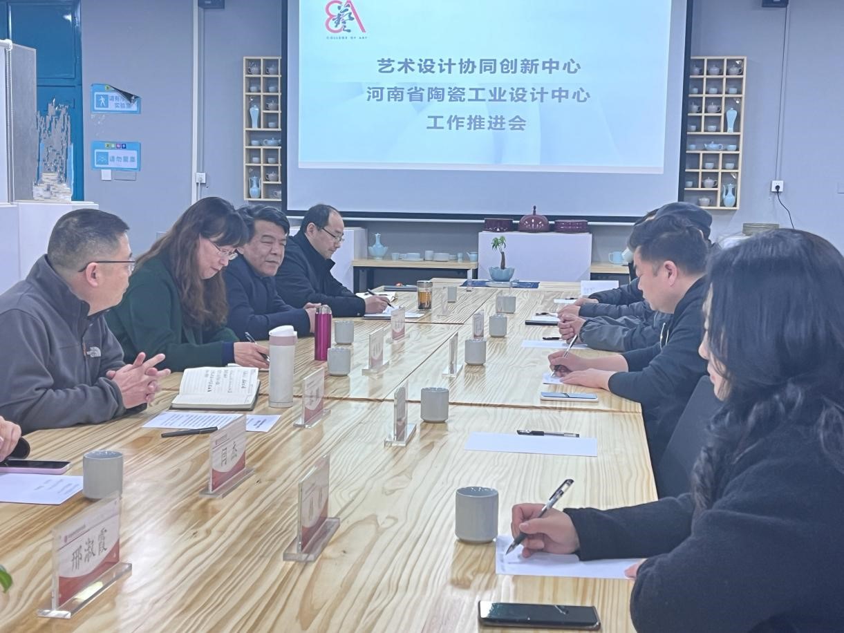 艺术学院院长张鹏汇报了2023年艺术设计协同创新中心和河南省陶瓷工业设计中心共同发力、协同育人的工作思路。他表示,2023年两个中心将重点围绕人才培养、科学研究、社会服务、文化传承等方面创新性开展工作;加强与陶瓷行业、企业、同类院校的对接融合,深耕艺术设计产业,构建“中心+”模式,形成“政、会、校、企”四方联动机制,推进中心健康发展。