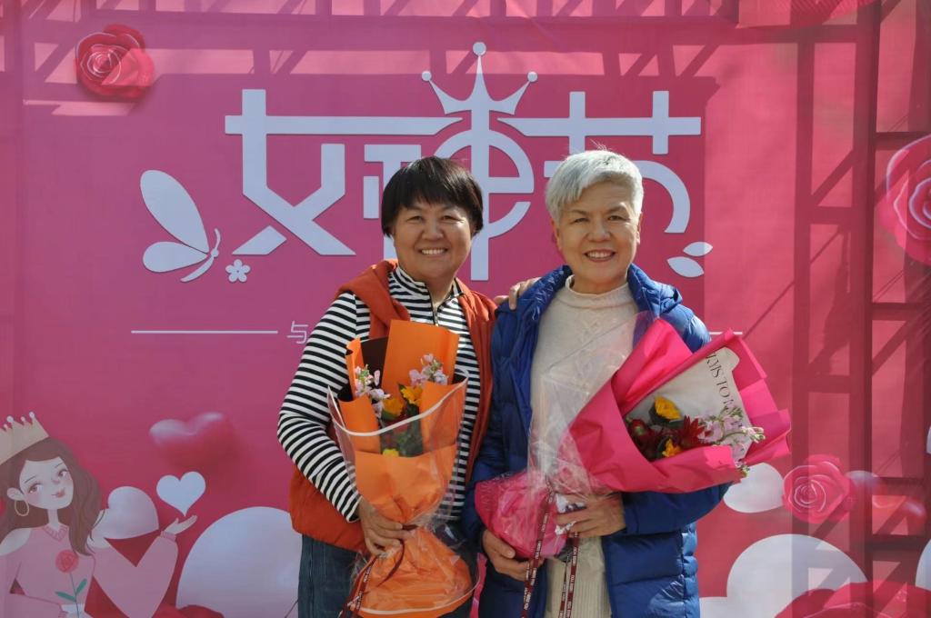活动中,退休女教职工沐浴着初春暖阳,呼吸着清新空气,畅谈着生活感受,时而在留影墙处驻足合影留念、互道情谊,时而积极参与游艺活动、寒暄问候,活动现场洋溢着浓浓的欢乐氛围。