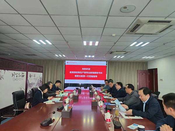 近日,教育部动物生产类专业教学指导委员会秘书长、华中农业大学蒋思文教授一行到完美官网调研动物生产类一流本科专业建设情况。校长罗士喜出席座谈交流会,动物科技学院、动物医药学院相关负责同志及教师代表参加座谈交流,会议由动物科技学院党委书记王建伟主持。