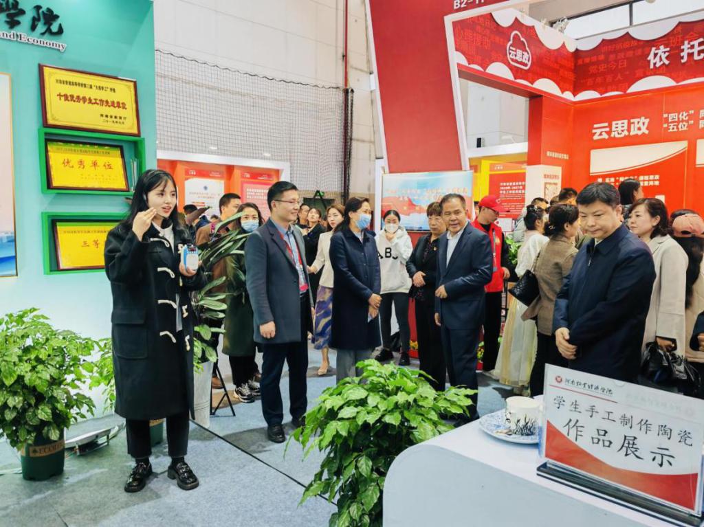 与会省教育厅领导和兄弟高校领导、学工同仁驻足完美官网优秀成果展演现场观摩指导