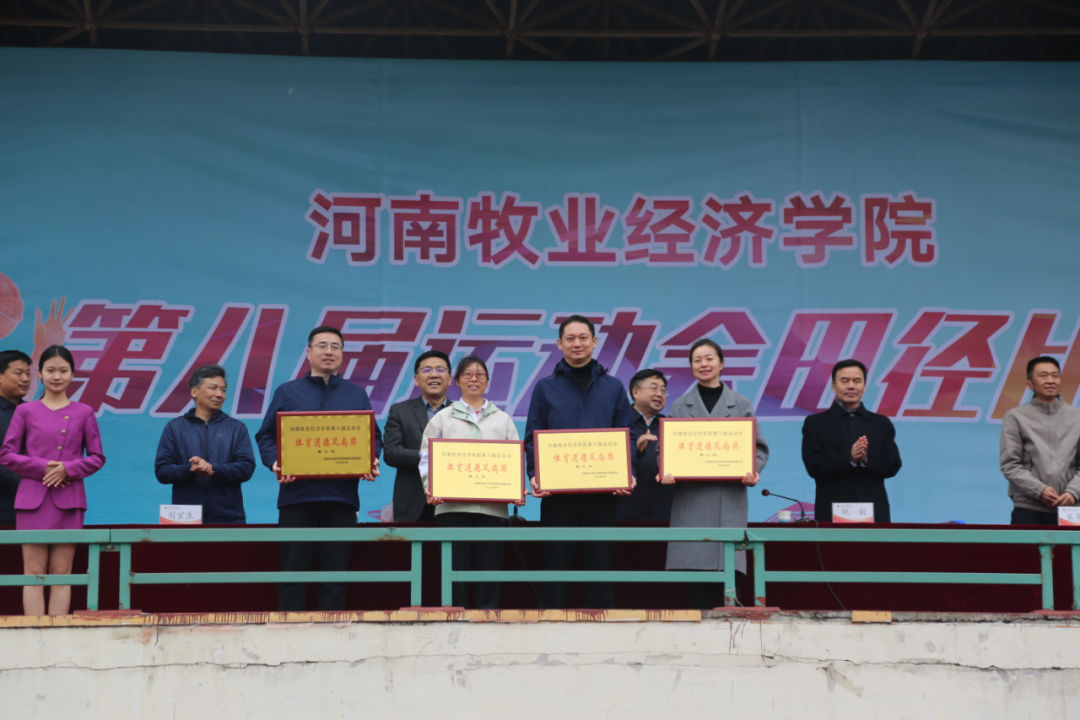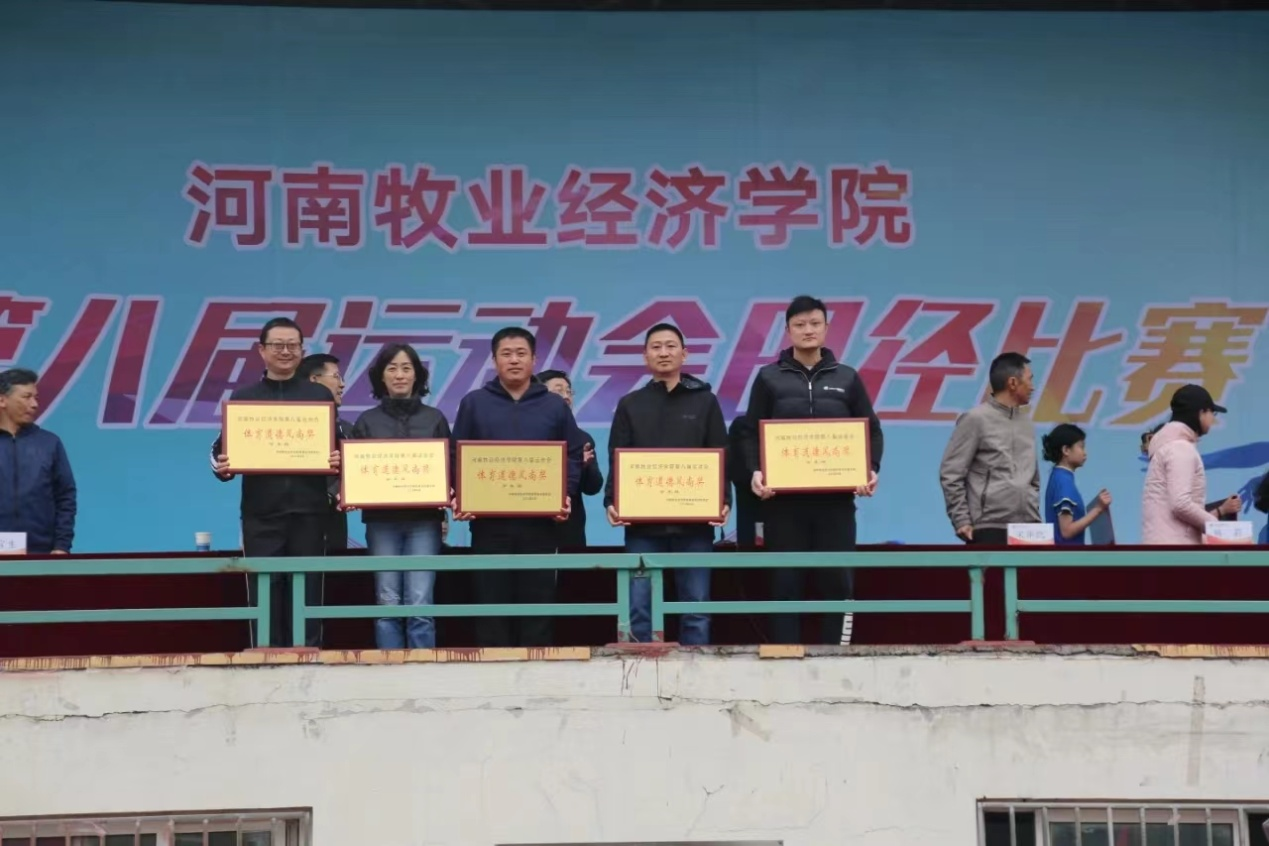 4月21日下午,完美体育官方网站第八届运动会胜利闭幕。校长罗士喜、校党委副书记李俊杰、副校长姚毅出席闭幕式,相关职能部门负责人、各学院师生、运动员代表参加闭幕式,闭幕式由李俊杰主持。总裁判长、体育部主任王国营在闭幕式上宣布了比赛成绩。参会领导为本届运动会的19个获奖单位颁发奖杯和奖牌,为学生组总积分前8名的学院颁发奖金。