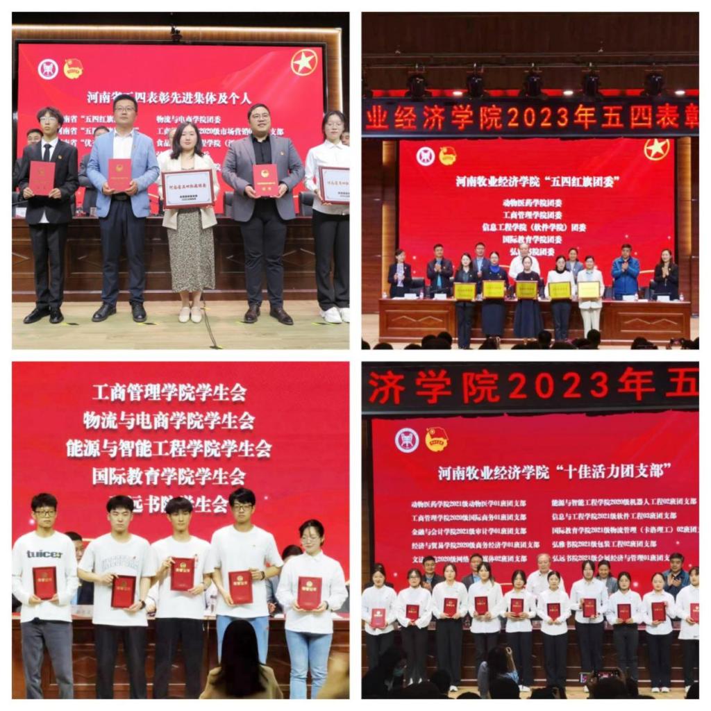 会上,郝景昊宣读了《共青团中央关于表彰全国五四红旗团委 (团支部)、全国优秀共青团员、全国优秀共青团干部的决定》、《共青团河南省委关于表扬河南省五四红旗团委(团支部)、河南省优秀共青团员、河南省优秀共青团干部的决定》、《关于表彰2022年度完美体育官方网站“五四红旗团委”“十佳活力团支部”“五四红旗团支部”“优秀共青团员”和“优秀共青团干部”的决定》;席波宣读了《关于表彰2022年校园微视频大赛优秀单位和项目的决定》、《关于表彰2022-2023学年寒假社会实践活动先进集体、先进个人和优秀实践报告评选的决定》、《关于表彰2023年度学雷锋志愿服务月优秀组织奖的决定》;胡先锋宣读了《关于表彰2022年就业创业工作先进集体和先进个人的决定》、《关于关于表彰2022年度完美体育官方网站“优秀学生会”的决定》、《关于表彰2023年完美体育官方网站“最美大学生”的决定》、《关于表彰2022年度学生社团先进集体和个人的决定》。与会领导为受表彰的先进集体和个人颁奖;食品与生物工程学院(酒业学院)团委书记马永生、能源与智能工程学院2021级自动化专业学生张亚宁代表先进集体和个人作了典型发言。全体团员青年面向团旗,举起右拳,重温入团誓词,用铿锵有力的誓言表达了一名共青团员的责任与担当。