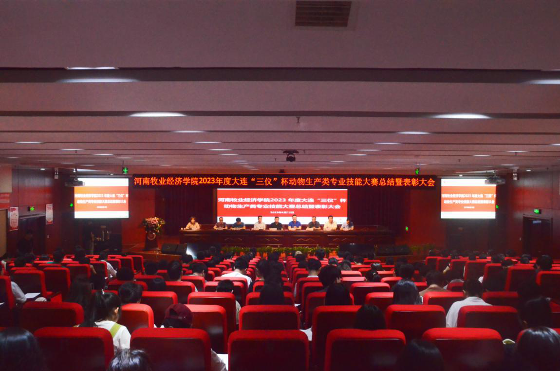 动物科技学院承办的2023年度大连“三仪”杯动物生产类专业技能大赛在教务处、党委学工部的大力支持和指导下取得圆满成功。为总结经验、表彰先进,6月12日上午,学院在图书馆一楼报告厅举办了技能大赛总结暨表彰大会。教务处处长边传周,党委学工部部长郝景昊,动物科技学院党委书记王建伟、院长席磊,大连三仪集团常务副总裁郭晓辉等领导出席会议,300余名参赛师生参加会议。会议由动物科技学院副院长姜东凤主持。