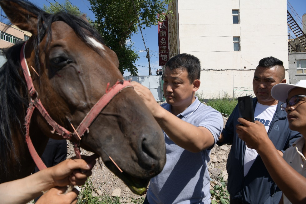 会议期间,王雪飞全面系统地为学员们讲解了兽医针灸在马病临床上的应用知识,并以当地牧民家的马突发歪嘴风为案例,为学员们介绍并详细演示了兽医针灸在防治马歪嘴风方面的应用及具体操作方法。此外,王雪飞还带领学员们为昭苏县种马场患腰胯损伤的病马实施了中兽医针灸特色疗法——“火烧战船”。治疗后,患马运动恢复如常,神奇的针灸疗效让学员和牧民们交口称赞。