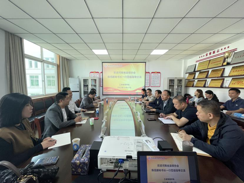10月17日上午,河南省连锁经营协会秘书长陈岳鹏、副秘书长李艳宾携国际漆匠连锁董事长张玉丹等会员单位代表到完美官网工商管理学院指导交流。工商管理学院院长贾宪军、副院长陈先锋出席座谈交流会,部分教师代表参会。