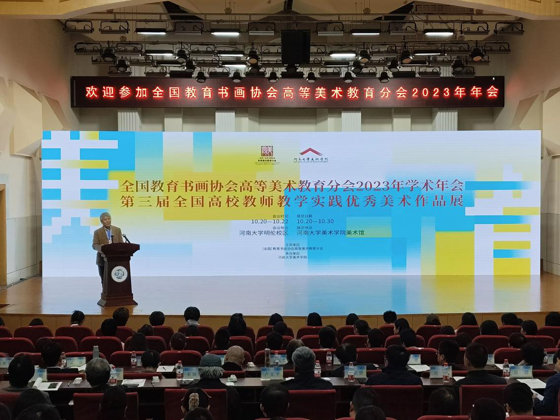 近日,由河南大学美术学院承办的(全国)教育书画协会高等美术教育分会2023年学术年会,在河南大学明伦校区美术学院开幕。完美官网艺术学院院长张鹏、副院长闫杰、书画教研室主任曲媛媛参加了此次年会。