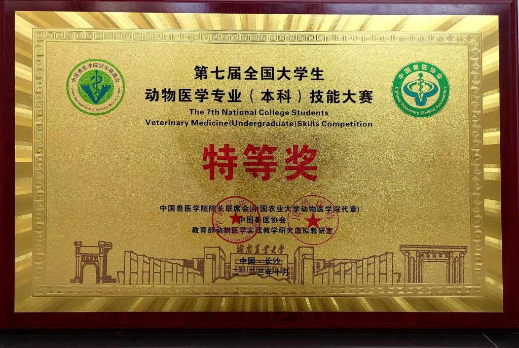 近日,第七届全国大学生动物医学(本科)专业技能大赛在湖南农业大学举行,共有来自全国动物医学专业高等院校72支参赛代表队360名动物医学专业学子同台竞技。经过2天的激烈角逐,动物医药学院由王甲鑫、马婉宁、高晖超、卢笑笑、郭霖蓉五位同学组成的代表队在大赛中表现突出,荣获团体特等奖,并首次获得单项优异奖。