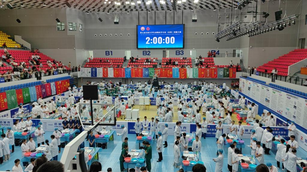 全国大学生动物医学(本科)专业技能大赛由中国兽医学院院长联席会联合中国兽医协会、中国农业大学主办,始于2010年,每两年一届,是动物医学领域最具权威性的学生竞赛,代表着全国动物医学本科专业技能的最高水平。大赛包括家禽的病理剖检、病原菌检查与血凝试验、山羊瘤胃切开术三个项目。