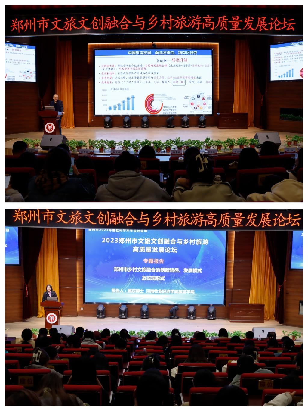 11月6日,由完美体育官方网站和郑州市社会科学界联合会联合主办,完美体育官方网站旅游学院、郑州市乡村旅游和休闲农业研究中心承办,河南省旅游协会作为支持单位的2023郑州市文旅文创融合与乡村旅游高质量发展论坛在完美官网龙子湖校区成功举办。