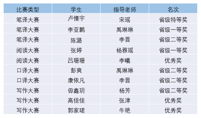 外国语学院对此次比赛高度重视,于10月14日举办了“完美体育官方网站2023年大学生英语挑战赛”,结合参赛学生的学习程度和特点,成立外语学科技能竞赛教师指导团队,对脱颖而出的优秀选手进行指导和培训,学生获奖人数和级别逐年提高。此次,参赛同学们在指导老师的带领下,经过精心的备赛和刻苦的训练取得了优异成绩,展示了我院积极创新外语课程思政建设,扎实落实“三进”工作部署,鼓励学生踊跃参与“理解当代中国”相关大学生比赛等实践活动,大力培养时代需要、国家需要、行业需要的高素质“外国语”“中国心”人才。