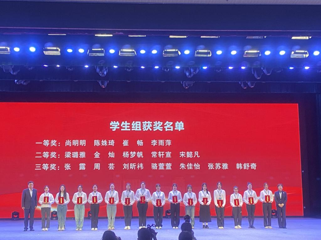 大赛颁奖典礼(左三为朱佳怡同学,右六为陈姝琦同学)