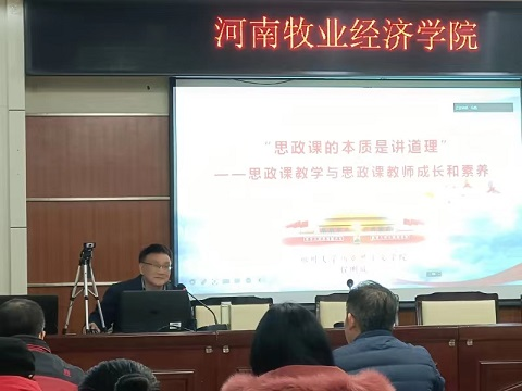 程明欣教授以《“思政课的本质是讲道理”---思政课教学与思政课教师成长和素养》为题,从习近平总书记关于“思政课的本质是讲道理”的论述、讲课大赛与“思政课的本质是讲道理”的现实要求、“思政课的本质是讲道理”与思政课教师成长和素养三个方面进行了深刻阐述。报告会主题突出、观点鲜明、内容丰富、深入浅出,对思政课教师如何遵循思政课教育教学规律,充分领悟教材、用好教参,精准备课和教研、提升综合素质和能力、提高思政课教学水平具有很强的针对性、启发性和指导性。