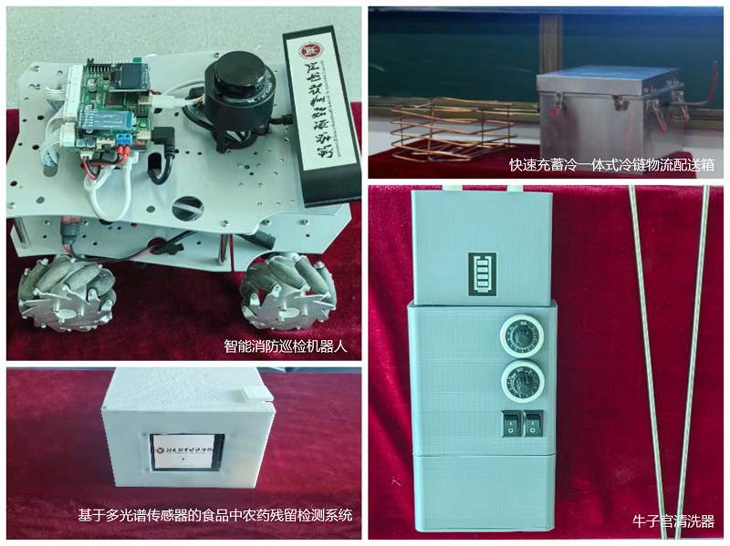 同学们参赛热情高涨、踊跃报名。近300名师生携27件作品参赛。参赛作品涉及多个方面,其中既有Graphene-高效便携式黑科技空调、无人托管-羊舍智能巡检机器人等与学院专业特色结合紧密的科技项目,又有Multi-powerP多功率可拆卸式充电器、基于多光谱传感器的食品中农药残留检测系统等改善生活品质的创新项目。比赛汇报展示环节,参赛选手通过PPT演示、实物展示、视频动画展示等形式详细汇报了项目内容。评委老师们从项目的科学性、创新性及其可行性、商业模式、团队实力等多个维度进行了严格而公正的评审指导,并提出了宝贵的指导意见和建议。体现了该院学生严谨求实的专业态度,勇于突破、创新的精神风貌。