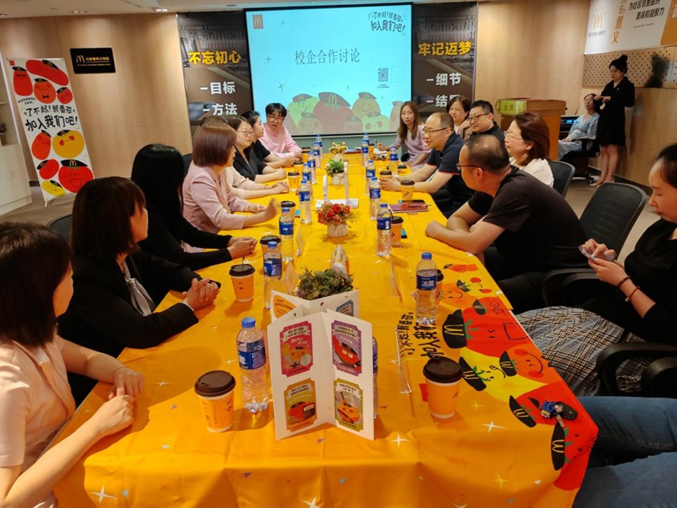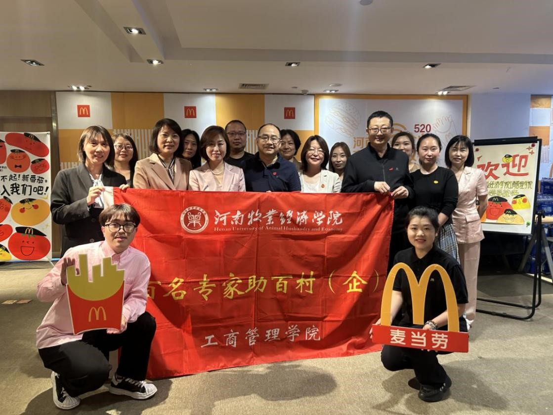 为深化校企合作,加强人才培养和产学研融合,推动就业工作提质增效,促进毕业生高质量就业,5月10日,工商管理学院党委书记王国辉、副院长何丽娜、党委副书记詹珅一行8人到河南迈乐加餐厅食品有限公司(麦当劳)走访调研,围绕共同促进人才培养、产教融合、项目合作、实习实践基地、拓宽就业渠道等方面进行深入交流。