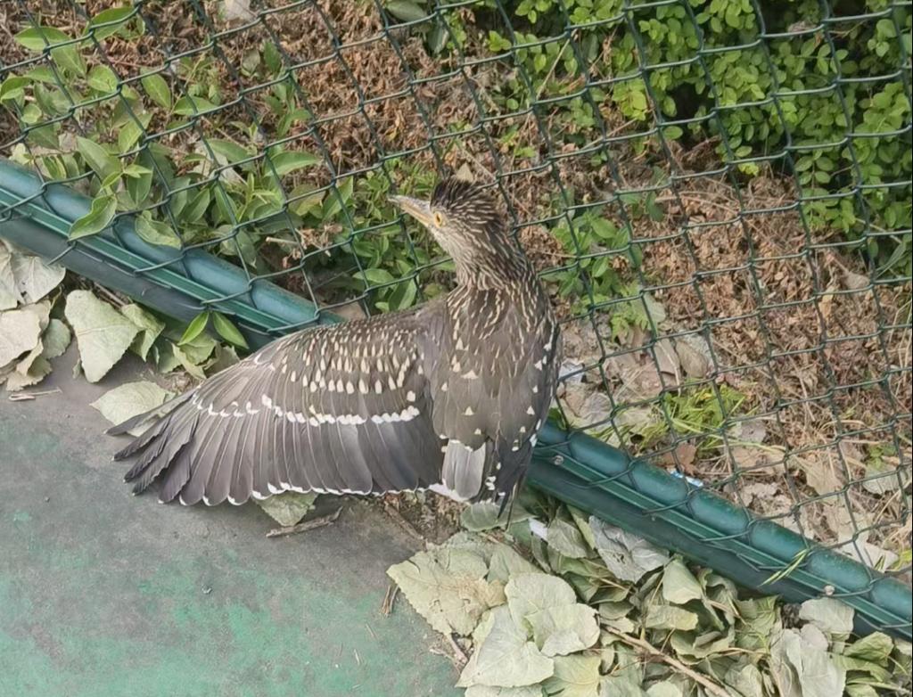 5月20日早上,物流与电商学院2023级物流工程专业学生安邦在校园里发现一只受伤的大鸟,这只鸟长相有些奇特,与常见鸟类略有不同,鸟的翅膀和腿已受伤,无法飞行。因担心它再次遇险,安邦便先将其保护起来,他通过网络查证,发现这只受伤的鸟疑似国家一级保护动物池鹭,便第一时间向学院党委副书记陈永刚报告,在陈永刚的指导下及时将受伤的池鹭送往河南省野生动植物保护中心,使其及时得到救护。
