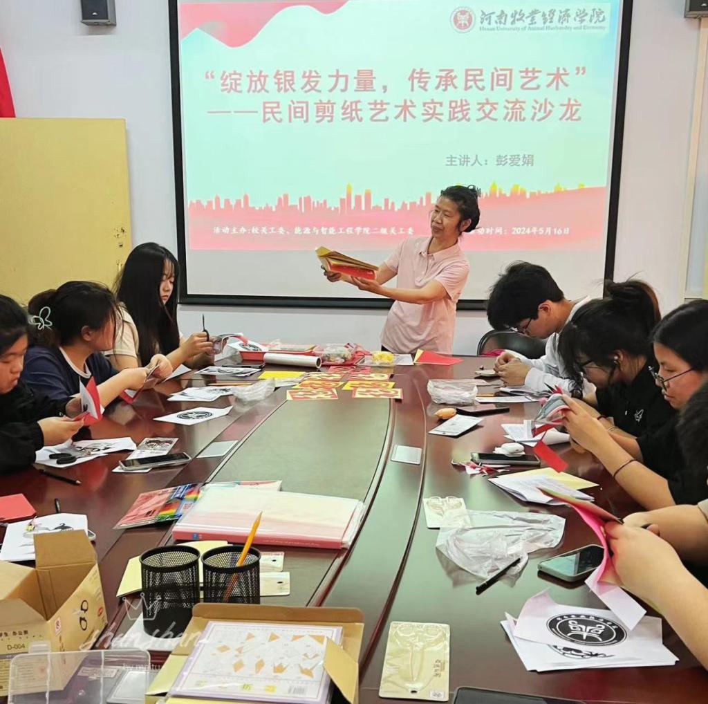 为进一步推动非遗文化走进校园,丰富青年学子的文化底蕴,培养学生的民族自豪感与爱国热情,近日,由校关工委主办,能源与智能工程学院二级关工委承办的“绽放银发力量,传承民间艺术”民间剪纸艺术交流沙龙,在完美官网北林校区老干部活动室成功举办。离退休职工工作处处长聂莉出席活动,退休教职工彭爱娟老师及20余名青年师生参加活动。