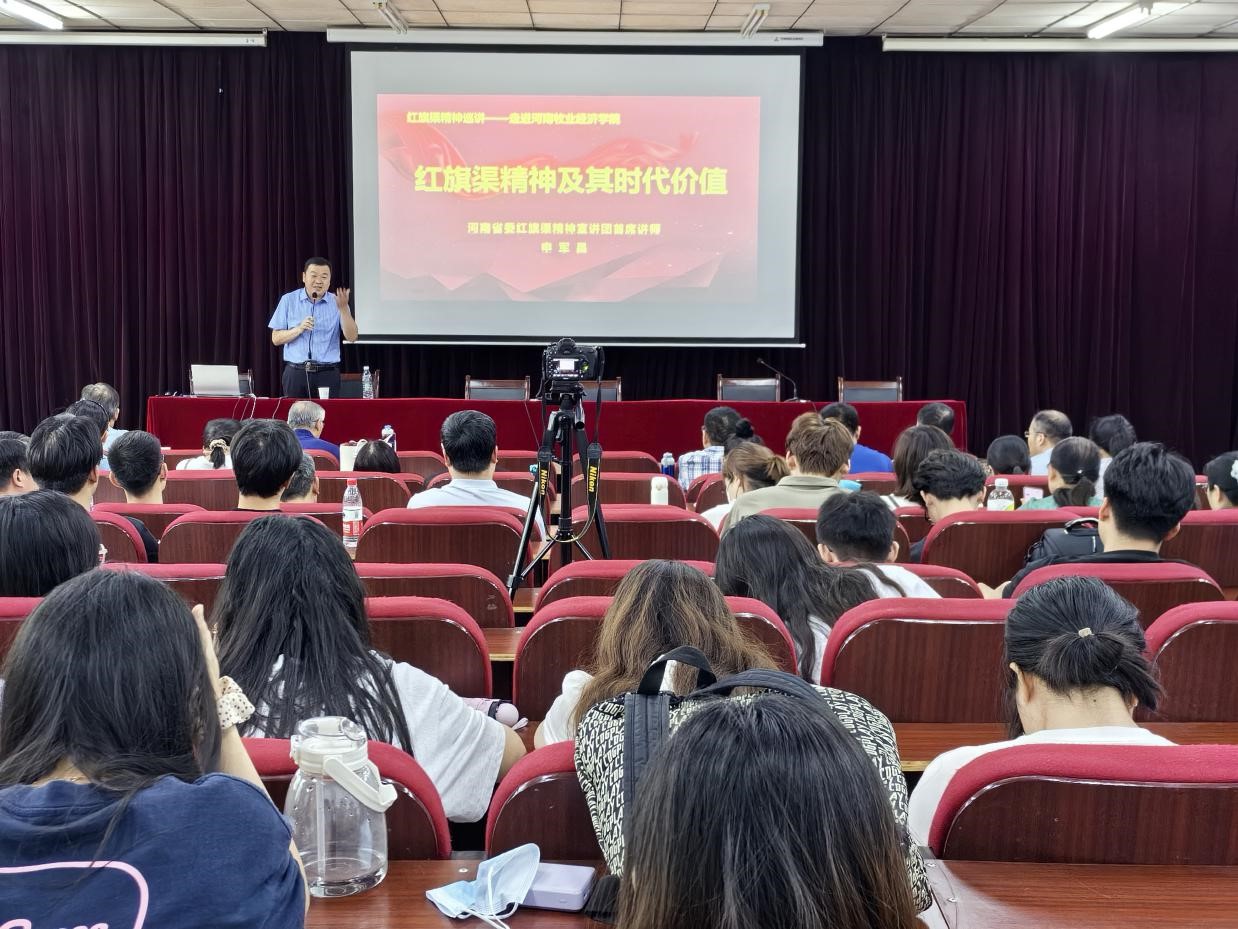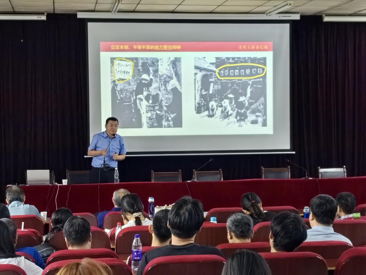 为深入学习中国共产党人的精神谱系、弘扬红旗渠精神、发扬光荣传统、坚定理想信念,6月6日下午,马克思主义学院邀请河南省委红旗渠精神宣讲团首席讲师、林州市委宣传部副部长申军昌在英才校区E110报告厅举办专题报告会。报告会由马克思主义学院院长白翔主持,马克思主义学院全体教师及马克思主义读书会的同学聆听了报告。本次报告会是红旗渠干部学院与马克思主义学院合作共建的系列活动之一。