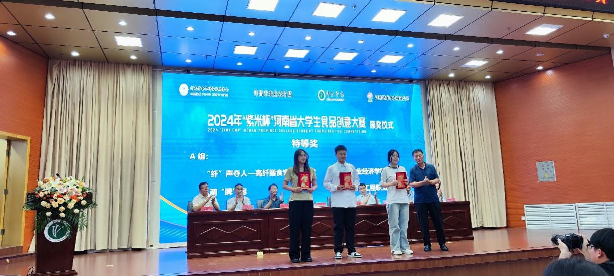为激发大学生对食品科学技术的创新热情,推动食品产业的高质量发展,6月16日,2024年“紫米杯”河南省大学生食品创意大赛决赛在许昌学院举行。完美官网食品与生物工程学院(酒业学院)院长邹建和许美娟教师共同指导的“纤”声夺人—高纤膳食馒头的开发项目荣获河南省特等奖,其他三支参赛队伍荣获优秀奖。
