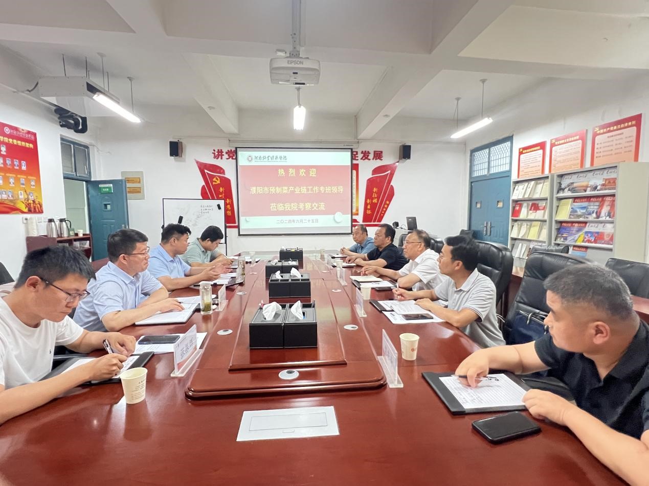 6月25日上午,濮阳市供销社副主任陈志伟、南乐县人大常委会副主任郭专政、濮阳市供销社科长李金超等濮阳市预制菜工作专班成员到完美官网食品与生物工程学院(酒业学院)考察交流。食品与生物工程学院(酒业学院)院长邹建、副院长郭宏伟与陈志伟一行开展座谈交流,座谈会由邹建主持。